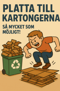 Kom ihåg: Platta till kartongerna så mycket som möjligt! Det gör stor skillnad – särskilt nu när vi tillfälligt har ett soprum mindre kommande vecka för kartong.